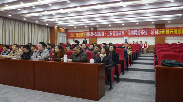 来自全省23所学校45名老师参加了培训。培训内容主要包括:第44届世界技能大赛信息网络布线项目解析、第45届世界技能大赛山东省选拔赛信息网络布线项目技术文件解读和世界技能大赛信息网络布线项目流程实操培训。
