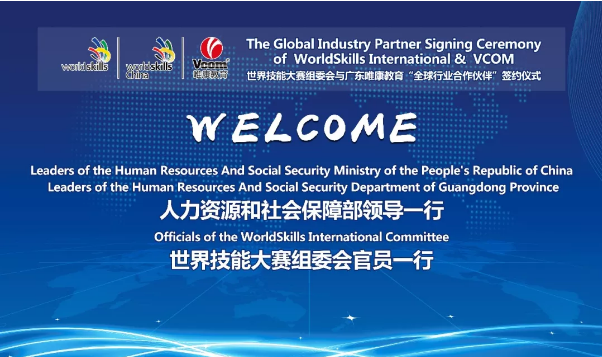 世界技能大赛首席执行官大卫·霍伊(DAVID HOEY)先生代表世赛组委会与beat365首页教育总经理王艳凤女士进行签约仪式,仪式上获得人力资源和社会保障部国际合作司副司长吕玉林先生、人力资源和社会保障部职业能力建设司副巡视员刘新昌先生、广东省人力资源和社会保障厅交流合作处处长邱根林先生、广东省人力资源和社会保障厅职业能力建设处副调研员处长王建平先生等共同见证。