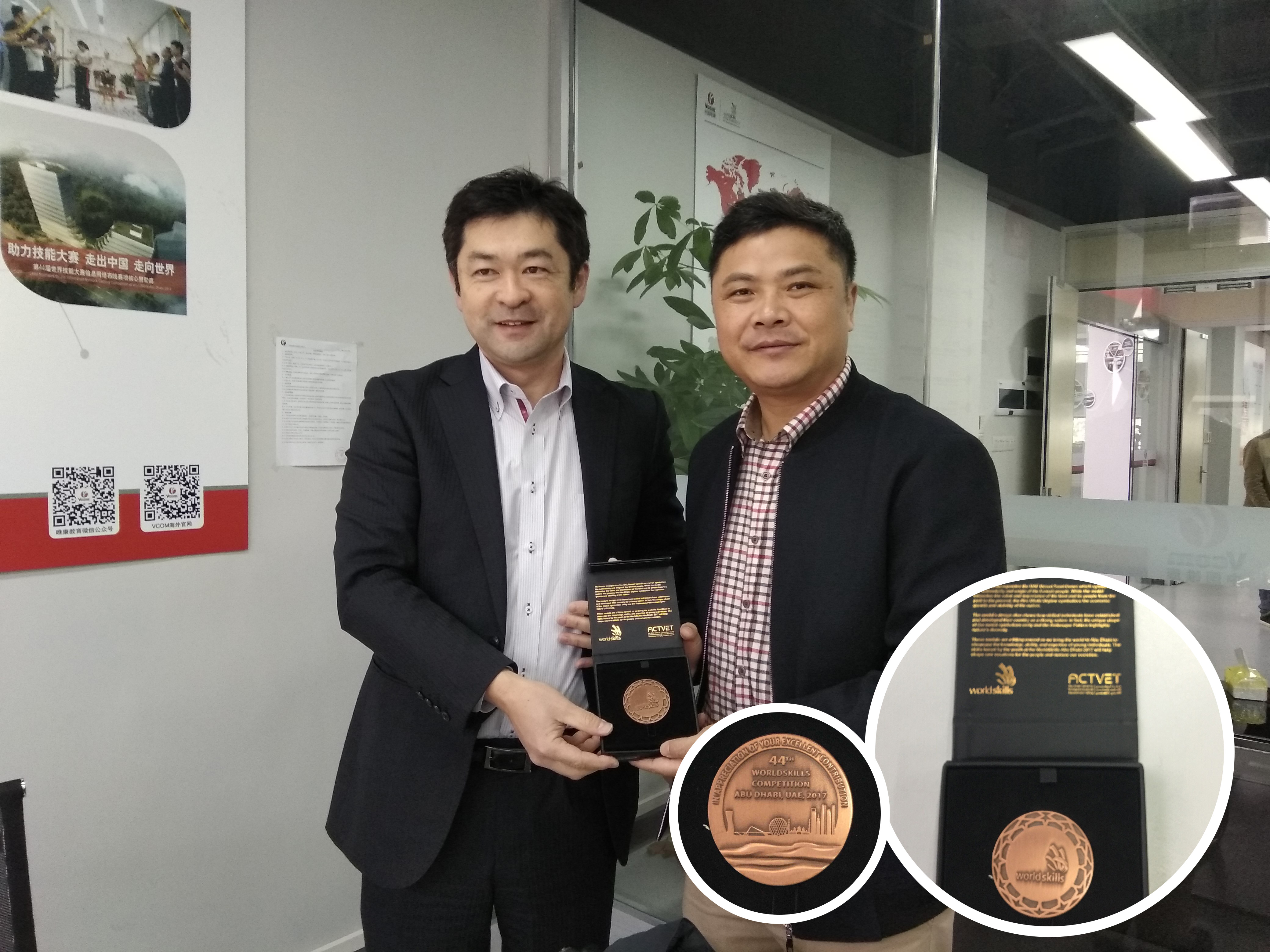 实锤四:12月18-19日,世界技能大赛信息网络布线项目发起人、世界技能大赛信息网络布线项目经理菊池拓男教授代表世赛组委会给黄帅民董事长颁发纪念奖章