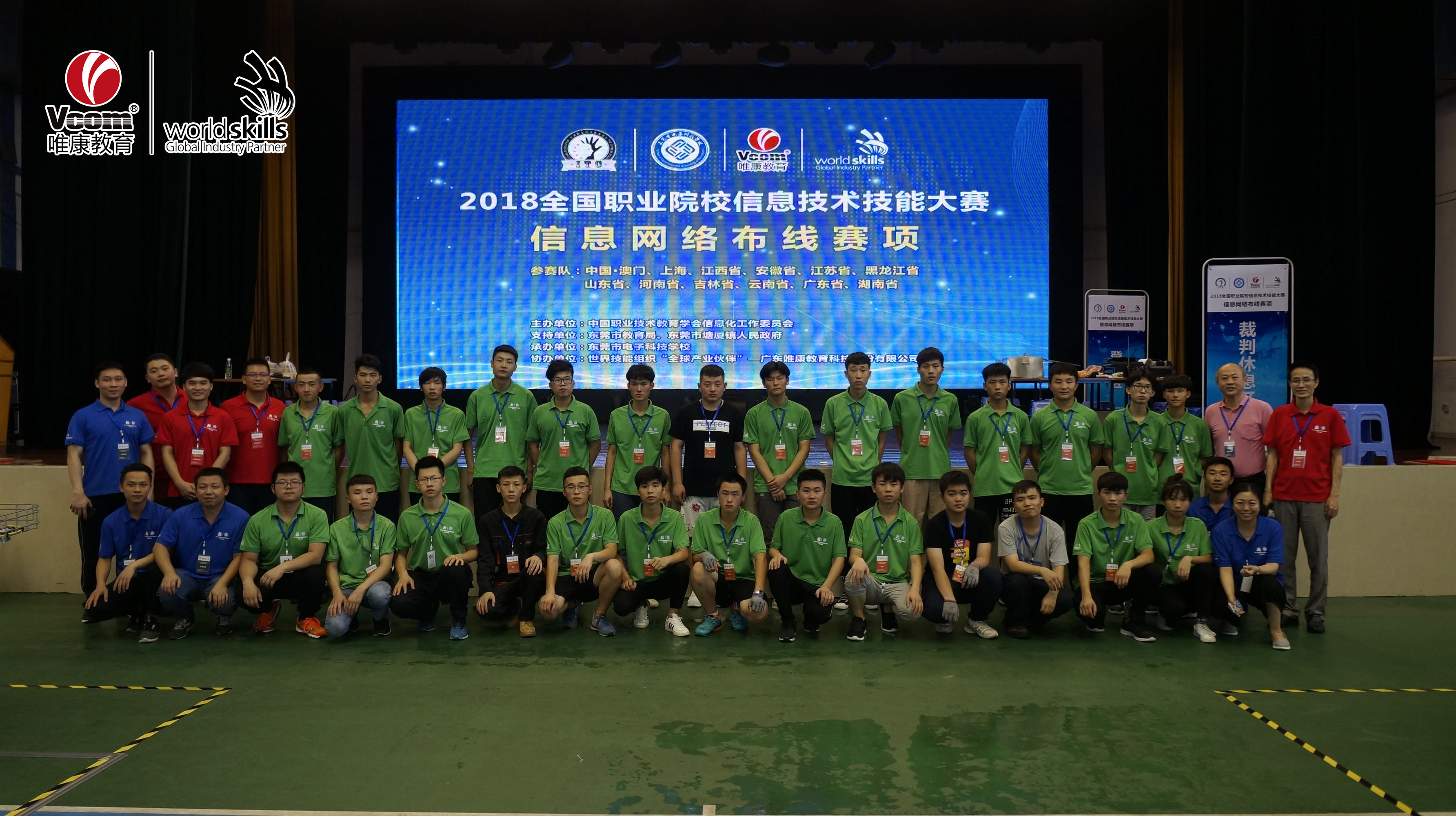 信息网络布线赛项选手、裁判、工作人员合照