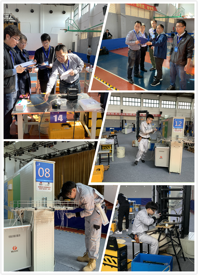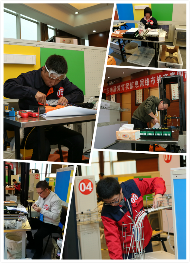 其中“信息网络布线”赛项中,来自全省各地市、行业、企业的12支代表队,56名选手进行了激烈角逐。项目的主要比赛内容有:室内光缆主干布线,时长60分;铜缆链路布线,时长100分;大对数主干布线,时长50分;铜缆速度比赛,时长30分,共计4小时。