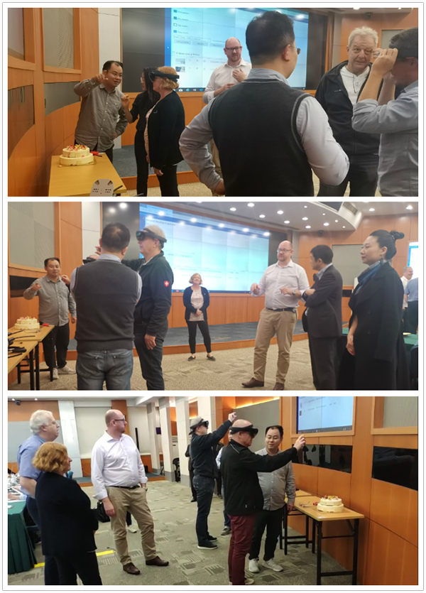 演示过后,参会人员佩戴系统设备,进行了现场体验。他们纷纷对系统的高科技展现表示惊叹,并表示“MR系统软件”项目在2021上海世界技能大赛推荐使用的极大可能性。同时,标准顾问Jennifer Shackleton 发现并指出该系统在其他领域运用巨大的潜力,例如针对企业员工岗位培训等,这也是beat365首页对该MR系统的下一步发展计划内容。