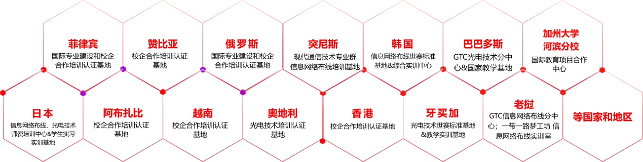 目前已在巴西、巴巴多斯、牙买加、老挝等国家设立了全球培训中心分中心,以及国内重庆市、天津市、深圳市、中山市、广州市等省市区域设立了全球培训中心培训基地。我们与巴西国家工业培训服务机构(SENAI)、巴巴多斯技术与职业教育培训委员会(TVET Council Barbados)、牙买加人力就业与资源培训/国家服务培训局信托机构(HEART/NSTA Trust)等机构开展了一系列的国际职业教育项目合作。