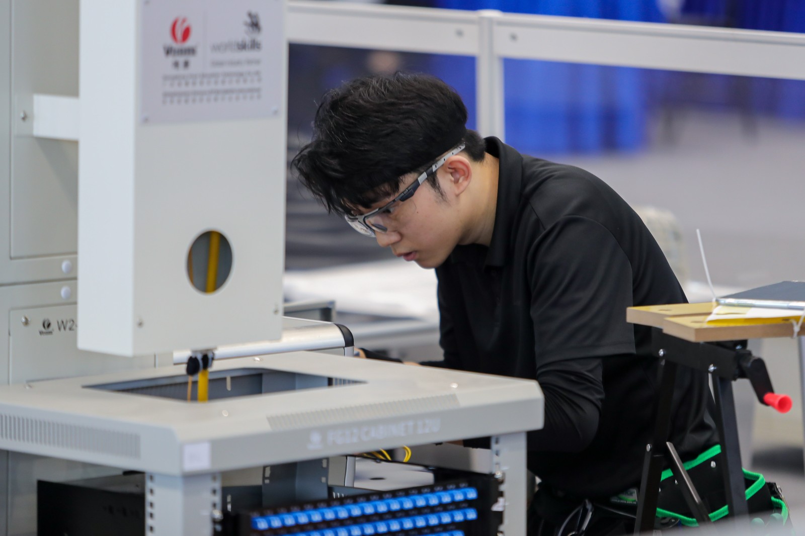 信息网络布线赛项的智能信息网络布线实训装置,模拟了真实建筑工程与数据中心环境,采用最小单元模块化设计,既符合传统综合布线教学需求,又完美适配从校级到世界级的竞赛标准。“硬件 + 软件” 一体化解决方案,既能高仿真训练操作技能,又能智慧化监控竞赛流程,为选拔综合布线高素质人才提供科学支撑。