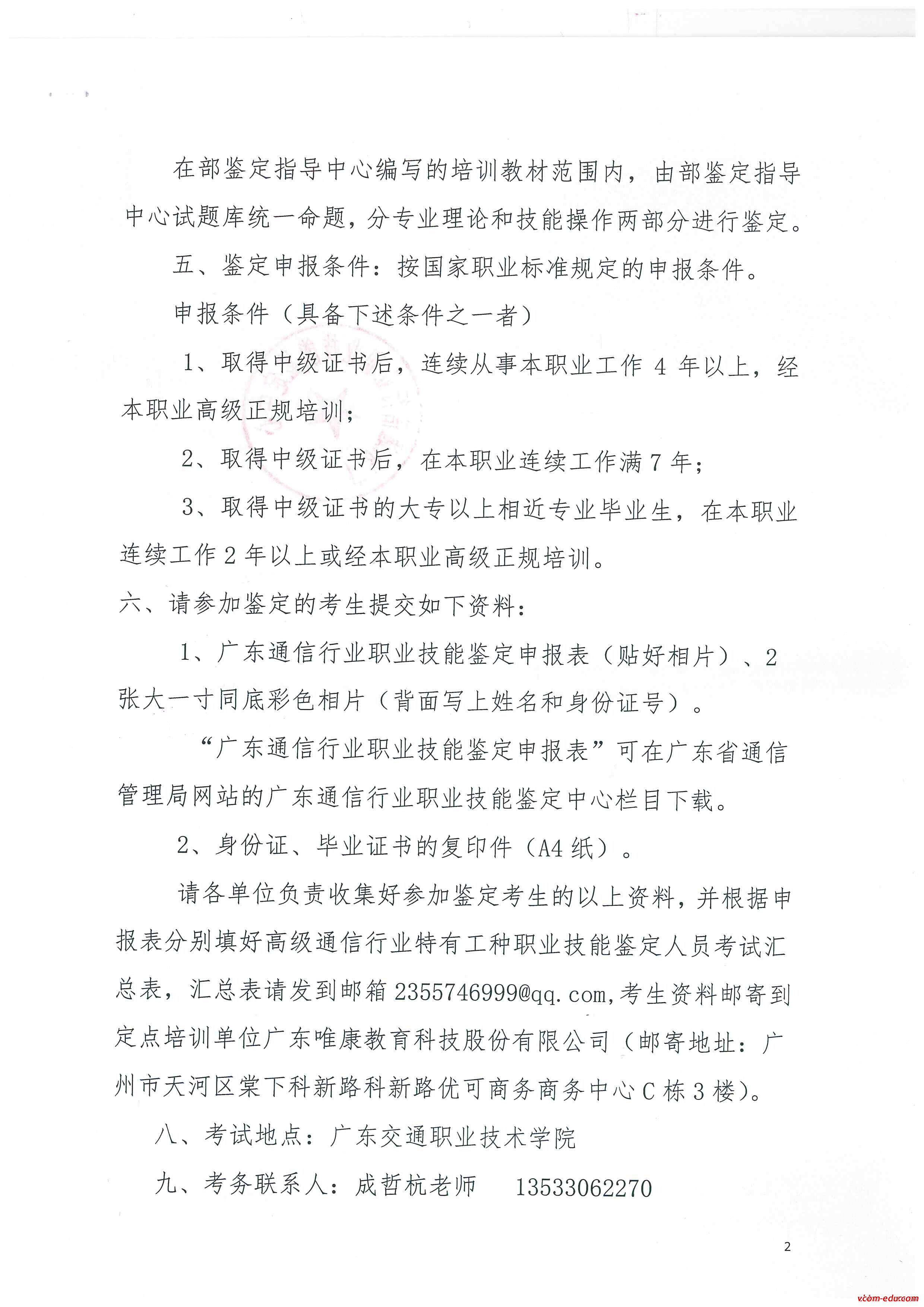 鉴定单位:广东通信行业职业技能鉴定中心